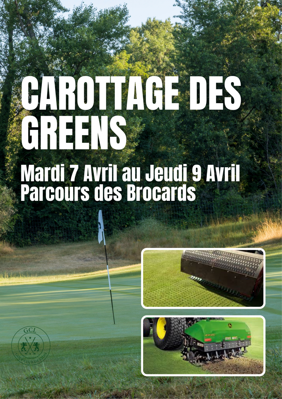 Pour votre information, le carottage des greens des Brocards se déroulera du mardi 7 au jeudi 9 avril inclus.