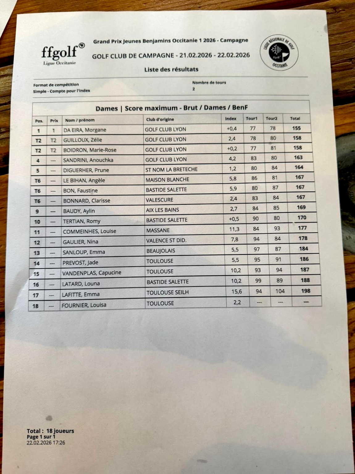 Durant le week-end du 21 et 22 février, s'est déroulé au Golf Club de Campagne le Grand Prix Jeunes. Nous tenons à féliciter les 4 premières ! Dont 4 joueuses du GCL.